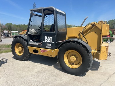 CAT TH 83 TELEHANDLER LOCATED AT SUFFOLK COTTON GIN, CALL 252.229.4331 14.00–24TG tires, quick connect knuckle, but no bucket or forks, hours unknown because tach is un legible, Serial number CATOTH83J3RNO5171